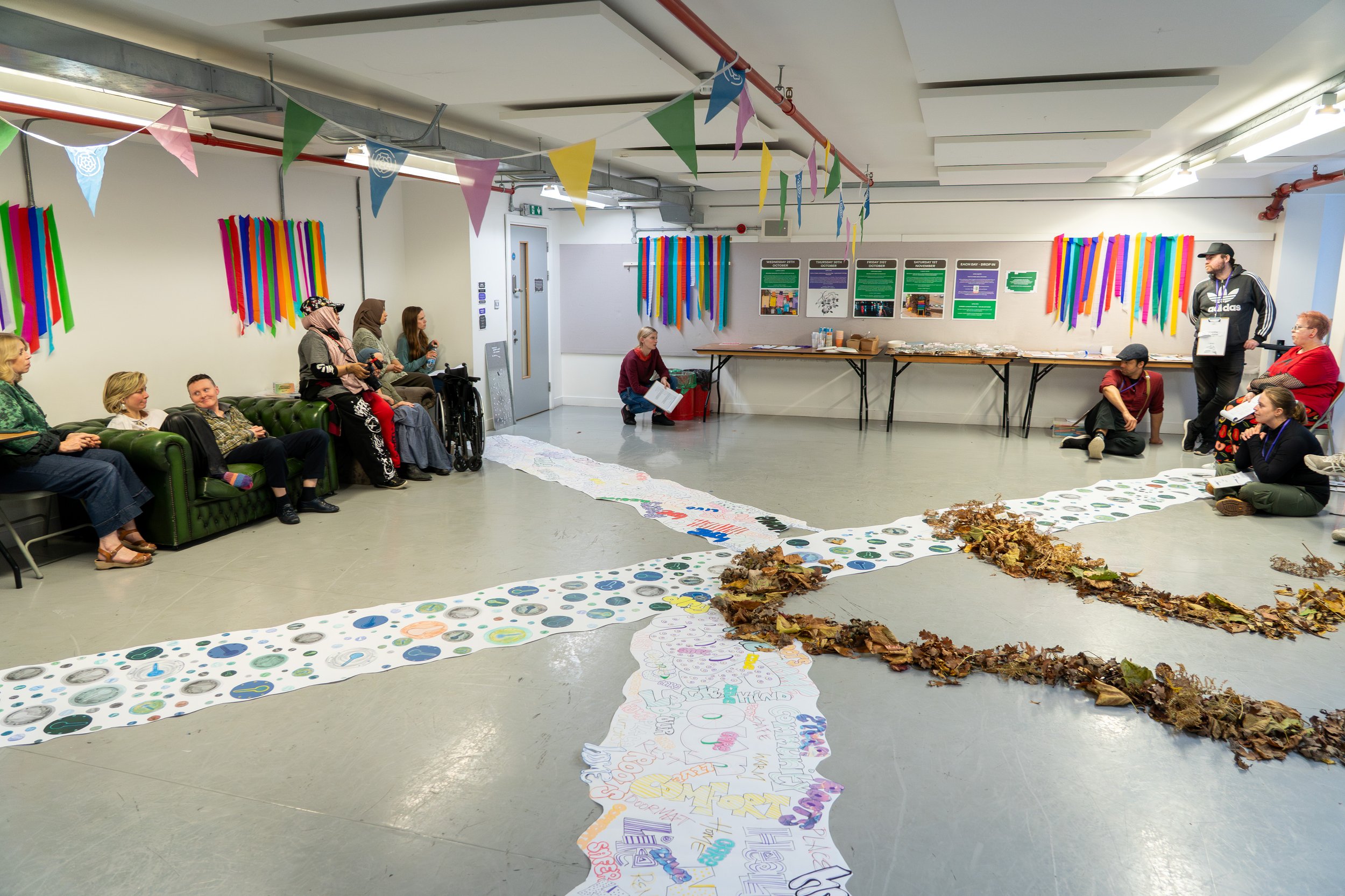 We hosted an incredible array of workshops, talks, performances, and artworks as an epic culmination of research on behalf of Camden Council. The Neighbourhood Studio was completely transformed into a colourful, interactive artwork comprising all of the neighbourhood contributions created by residents across our Making/Conversation workshops, which we ran for 10 weeks to discover insights into peoples priorities for the future of our homes and neighbourhood. This research is set to inform the writing of a Euston Housing Compact; a document outlining the principles and priorities of the community when it comes to delivering new homes. ODAC was a part of ensuring that resident voices were meaningfully sought out, listened to, and platformed in this research.