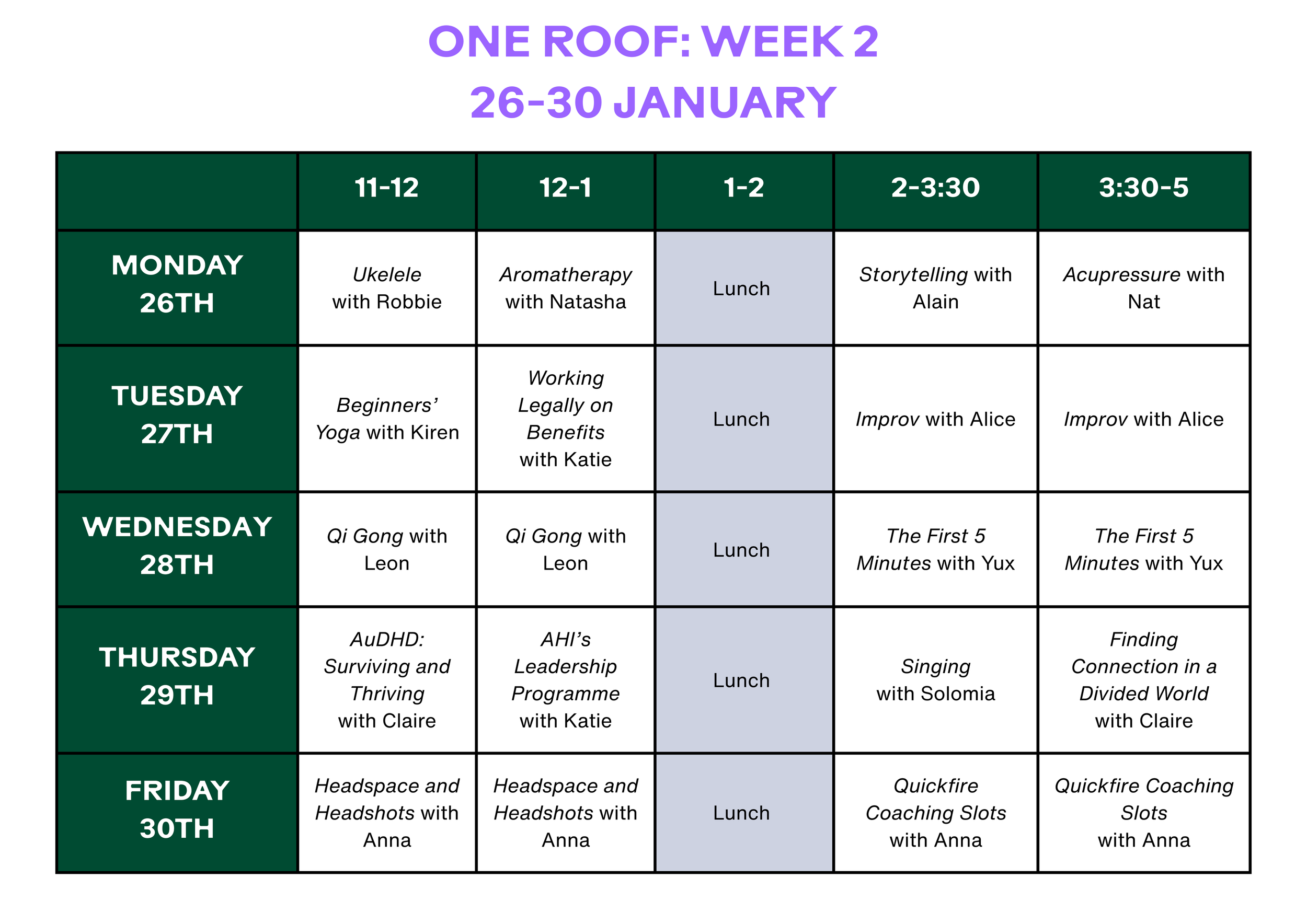 The other change we're making, as requested by the community, is that, alongside arts workshops, every day will contain at least one workshop focused on supporting wellbeing and mental health. Think relaxation, meditation, yoga, tai chi, and other practices to balance us as we navigate our lives and practise our creativity.